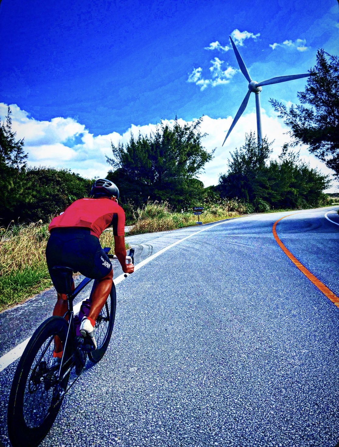 バイクは、国内屈指のロードレース ツール・ド・おきなわ のコースを活用。アップダウンでの持久力強化はもちろん、名護周辺の平坦区間では徹底したスピード持久走。