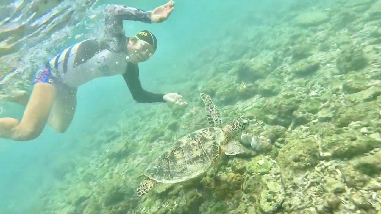 魚や珊瑚を楽しみながら泳げて、運が良ければ海の大先輩『ウミガメ』様もスイムトレーニングに参加しにくるかも!